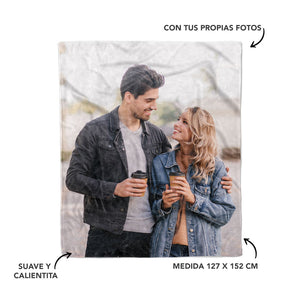 Suave frazada personalizable con una foto, puedes agregar el texto que tu quieras sólo hazlo en el campo de comentarios.